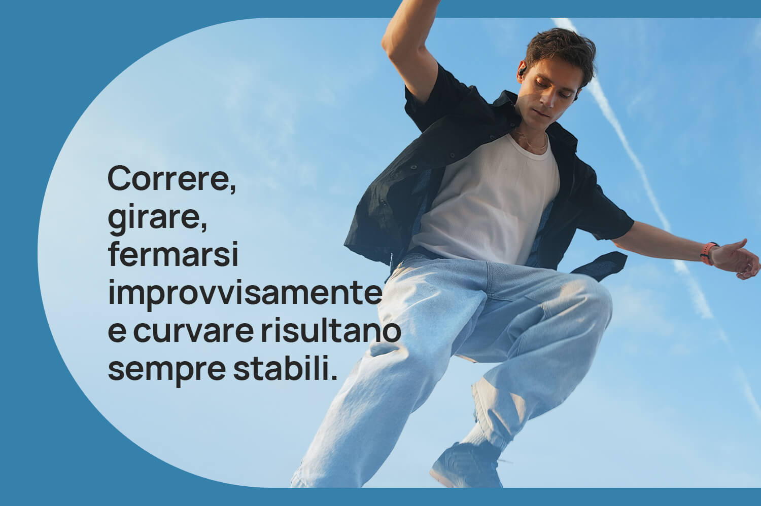 Resistenza IPX4 a acqua e sudore. Corsa, curve e frenate stabili, per un allenamento più divertente.