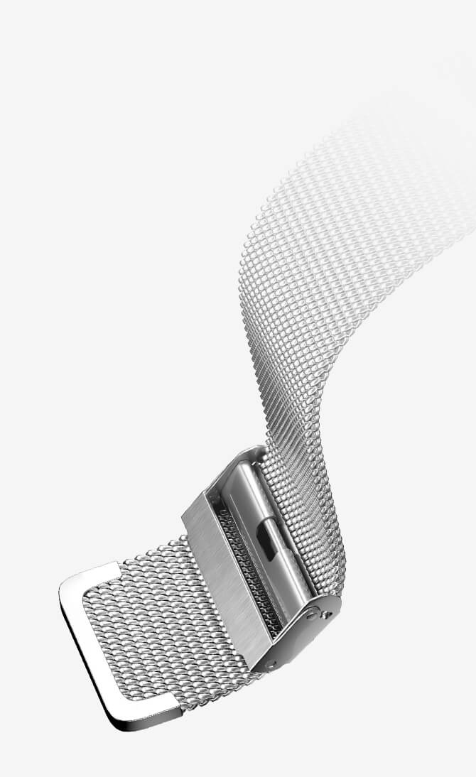 Milanese strap, Silver, Width: 20mm,Unfolded length 240mm.