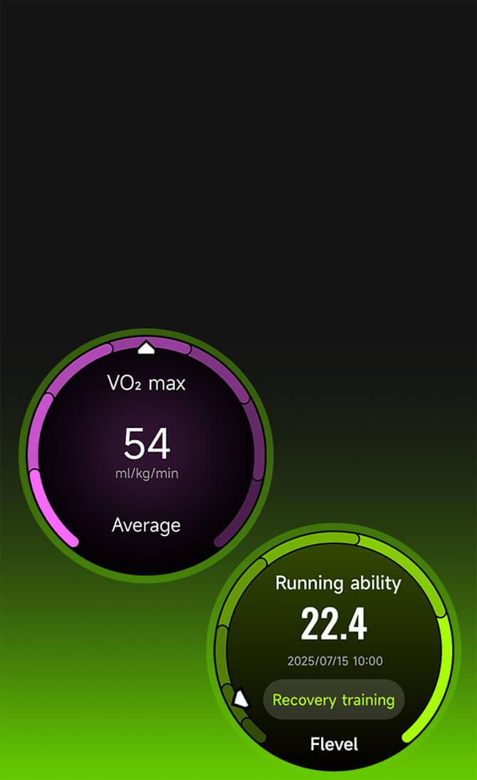 Calcola e visualizza con precisione l'indice delle capacità di corsa, il VO₂ Max e le sue tendenze, aiutandoti a comprendere chiaramente in quale fase di allenamento ti trovi.