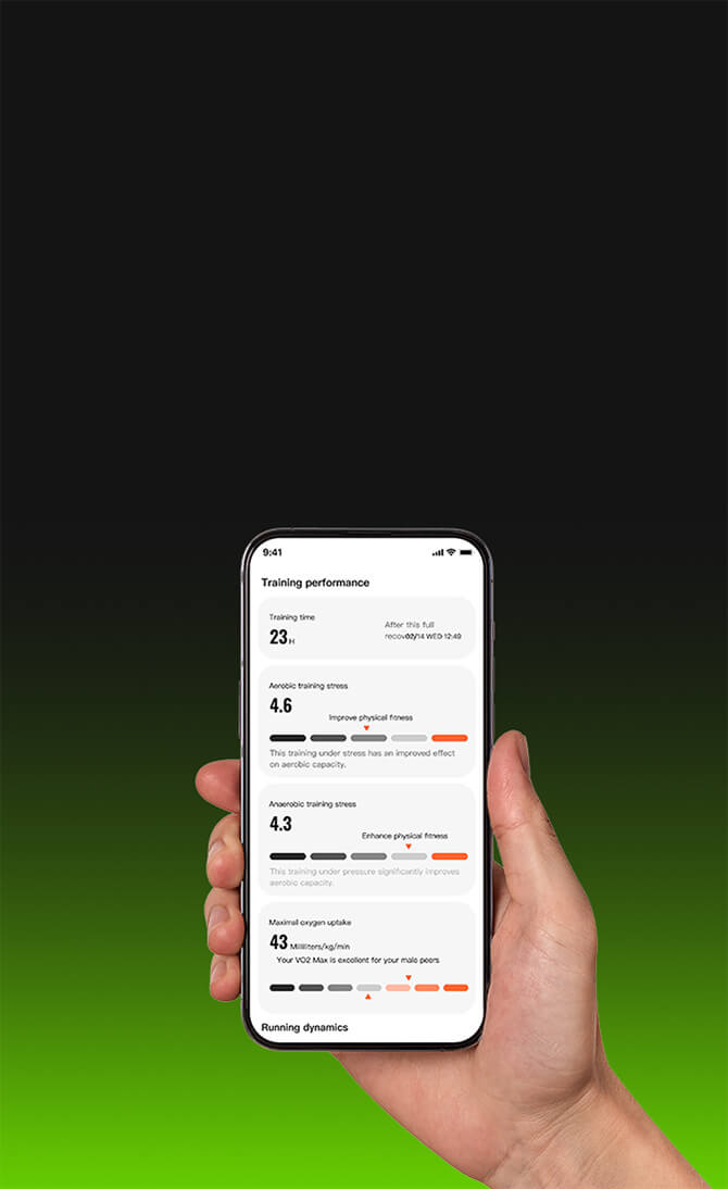 Fornisce dati professionali di corsa come il tempo di recupero, il carico di allenamento e il carico cumulativo, valuta l'adattamento fisico, offre una guida simile a quella di un coach e garantisce una condizione di corsa ottimale.