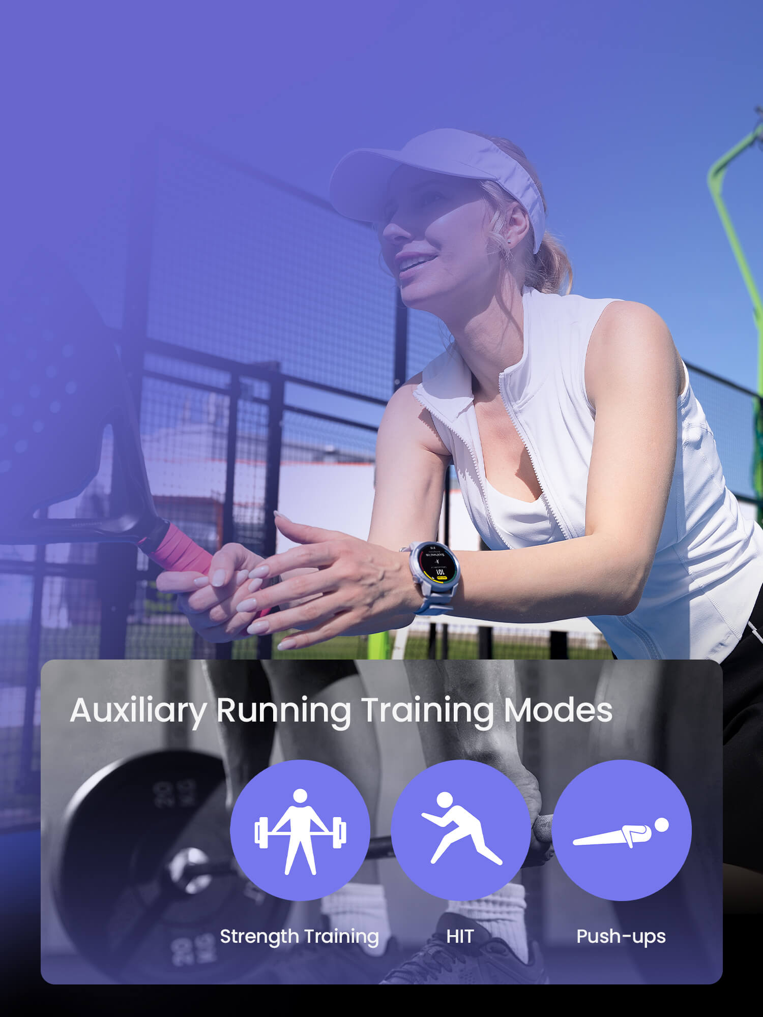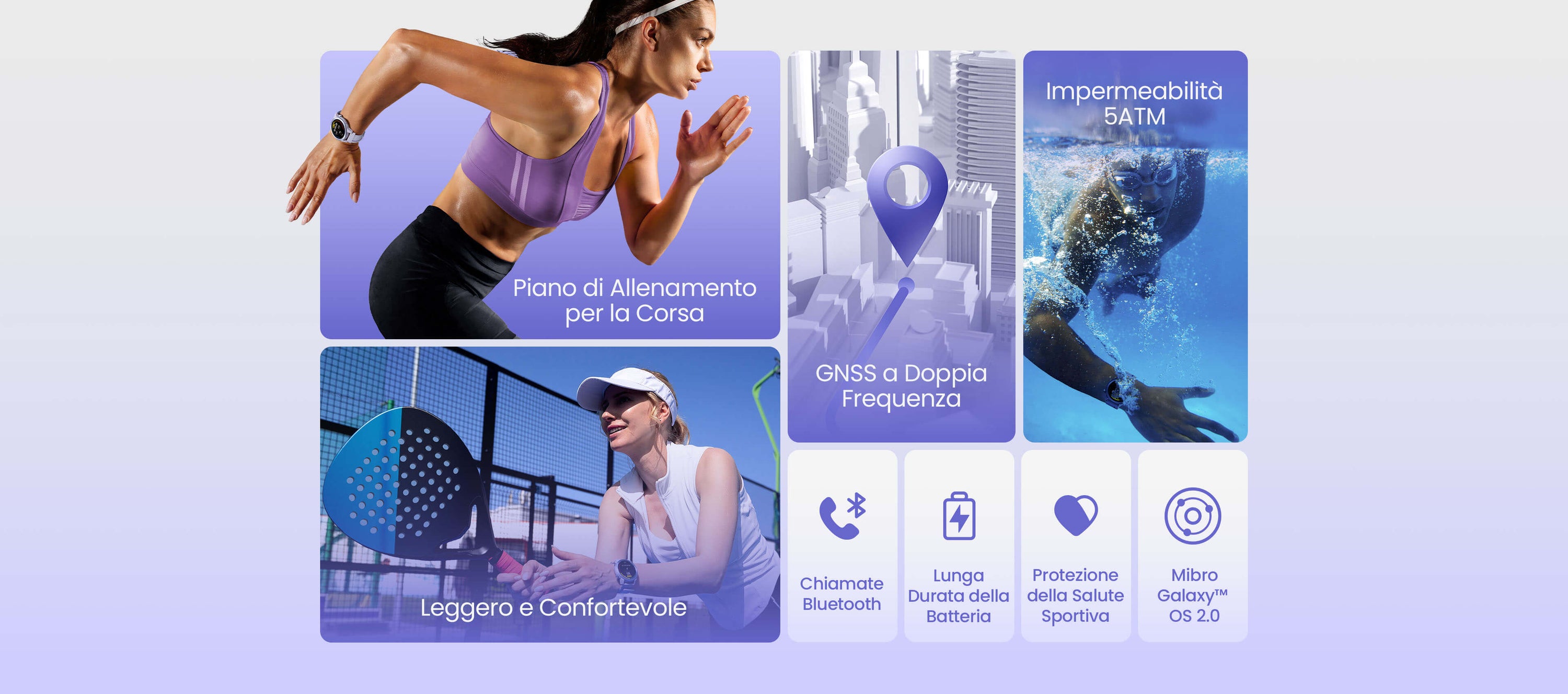 Sport popolari: corsa all'aperto, corsa su pista, tapis roulant, trail running, camminata all'aperto, ciclismo all'aperto, escursionismo, trekking, padel, piscina, camminata indoor, triathlon, tennis, marcia, nuoto in acque libere, salto con la corda, ellittica, vogatore, allenamento libero.