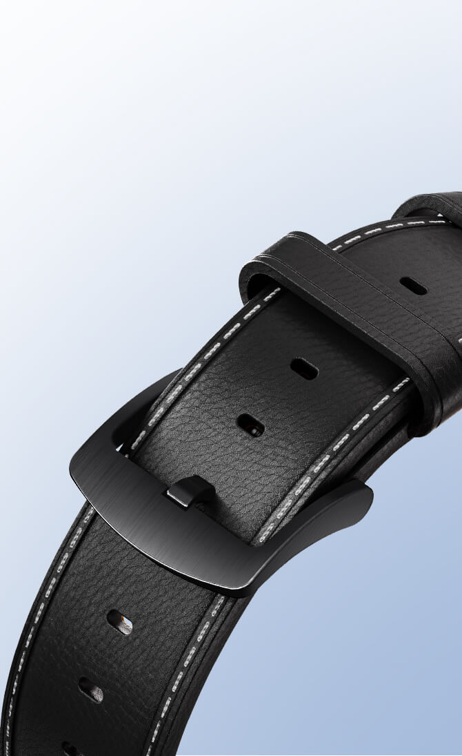 Includes one black leather strap, one black silicone strap, and one charging cable.