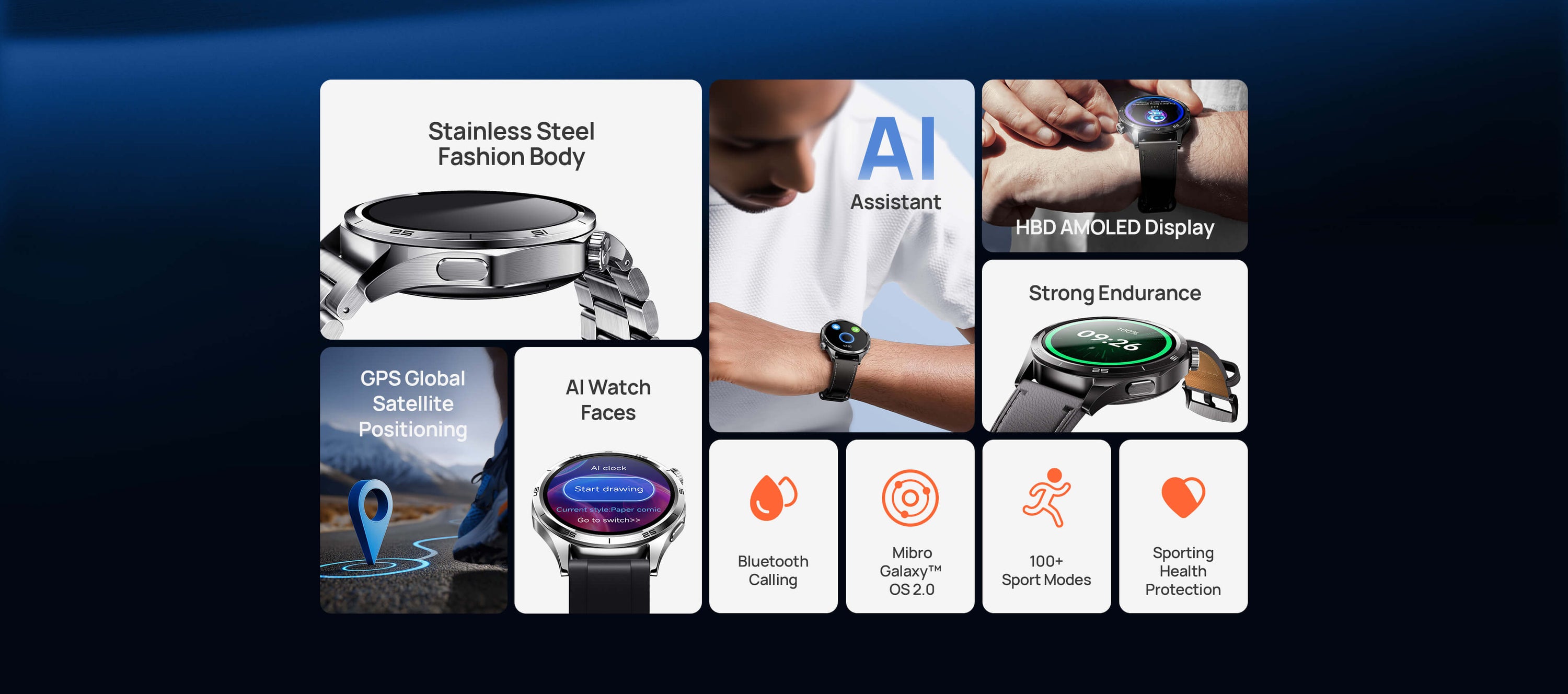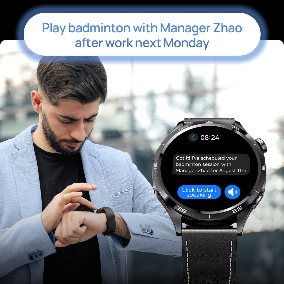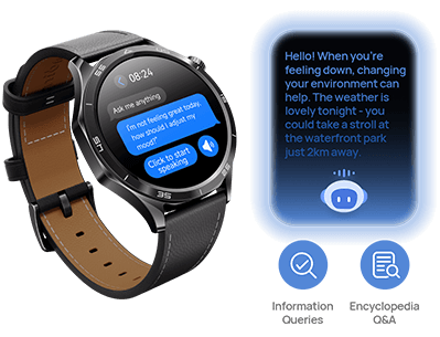 Interact naturally with the built‑in AI Assistant for voice Q&A, schedule reminders, and even generate personalized watch faces with just your words.