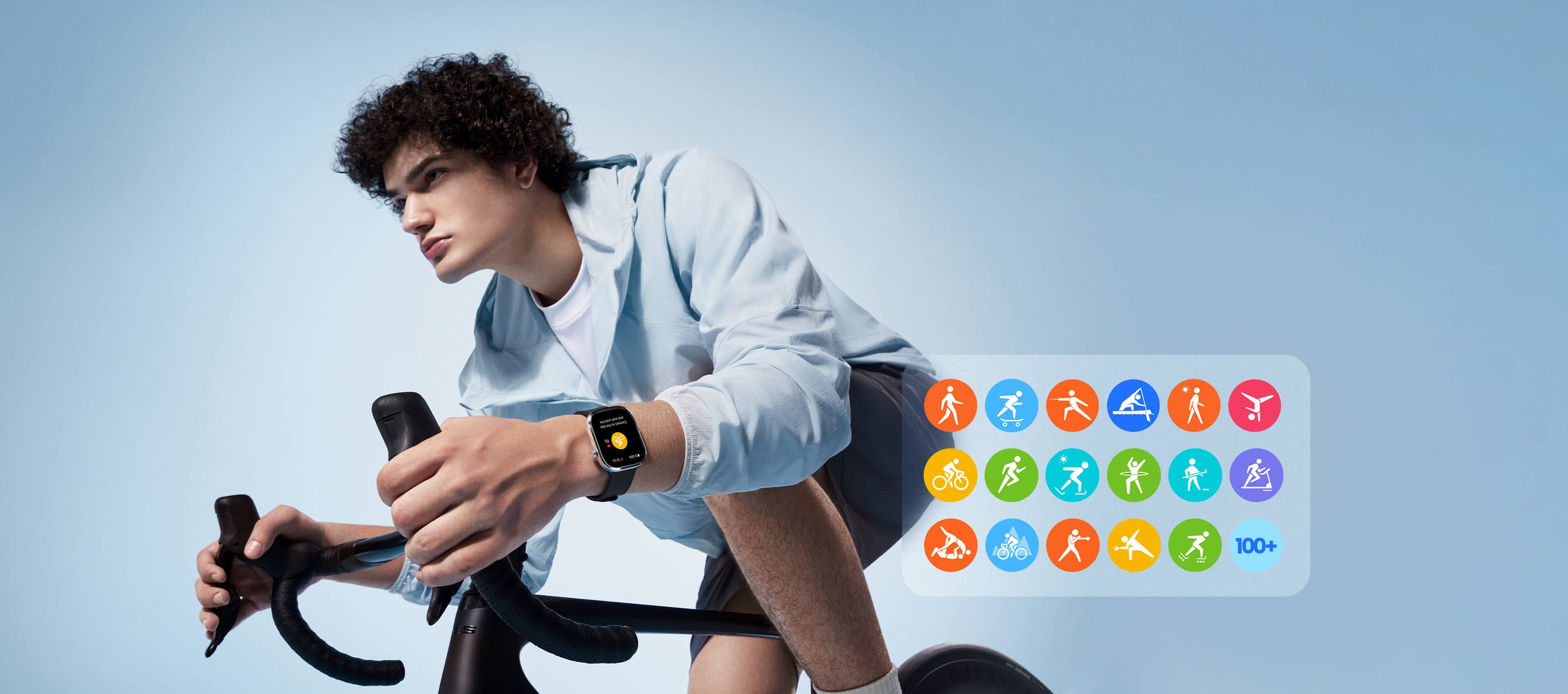 Impermeabile fino a 2 ATM e progettato per tutte le tue esigenze di fitness con oltre 100 modalità sportive specializzate.