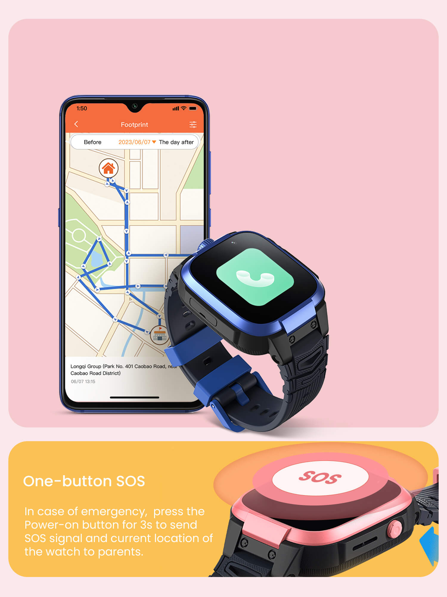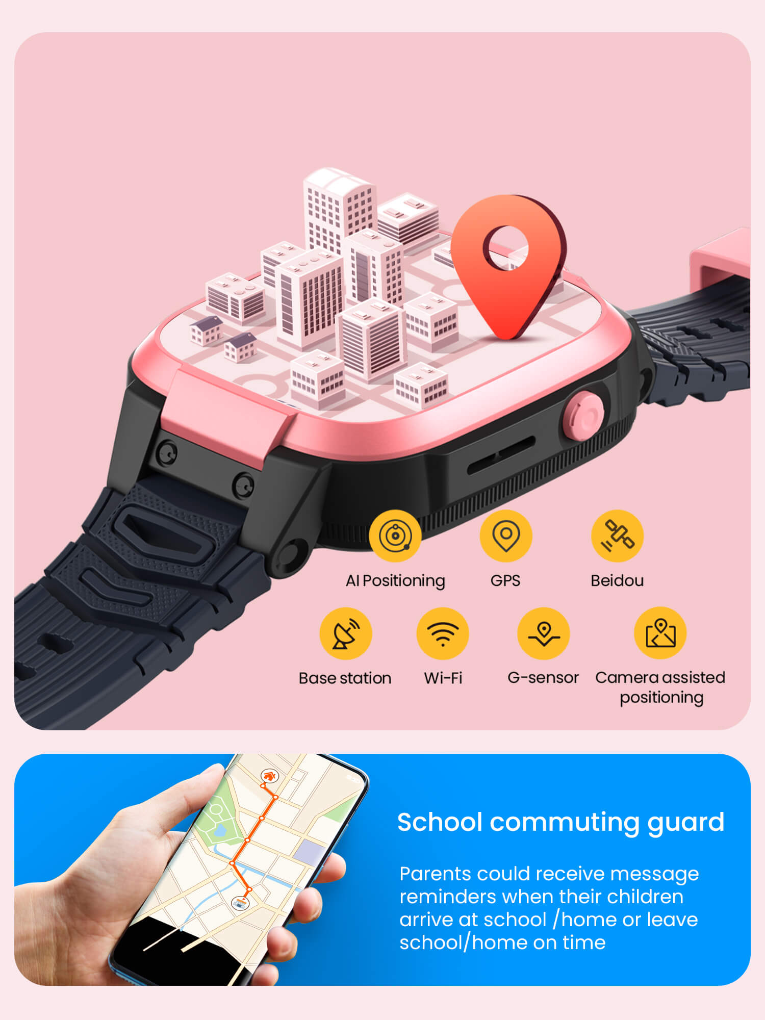 Avvisa i genitori quando i loro figli arrivano a scuola, tornano a casa o escono da scuola prima del previsto. Aree sicure e monitoraggio per 3 mesi. Monitora la posizione di tuo figlio con 7 modalità di posizionamento avanzate (GPS, Beidou, Wi-Fi e altro) per un monitoraggio rapido e accurato tramite 4G.