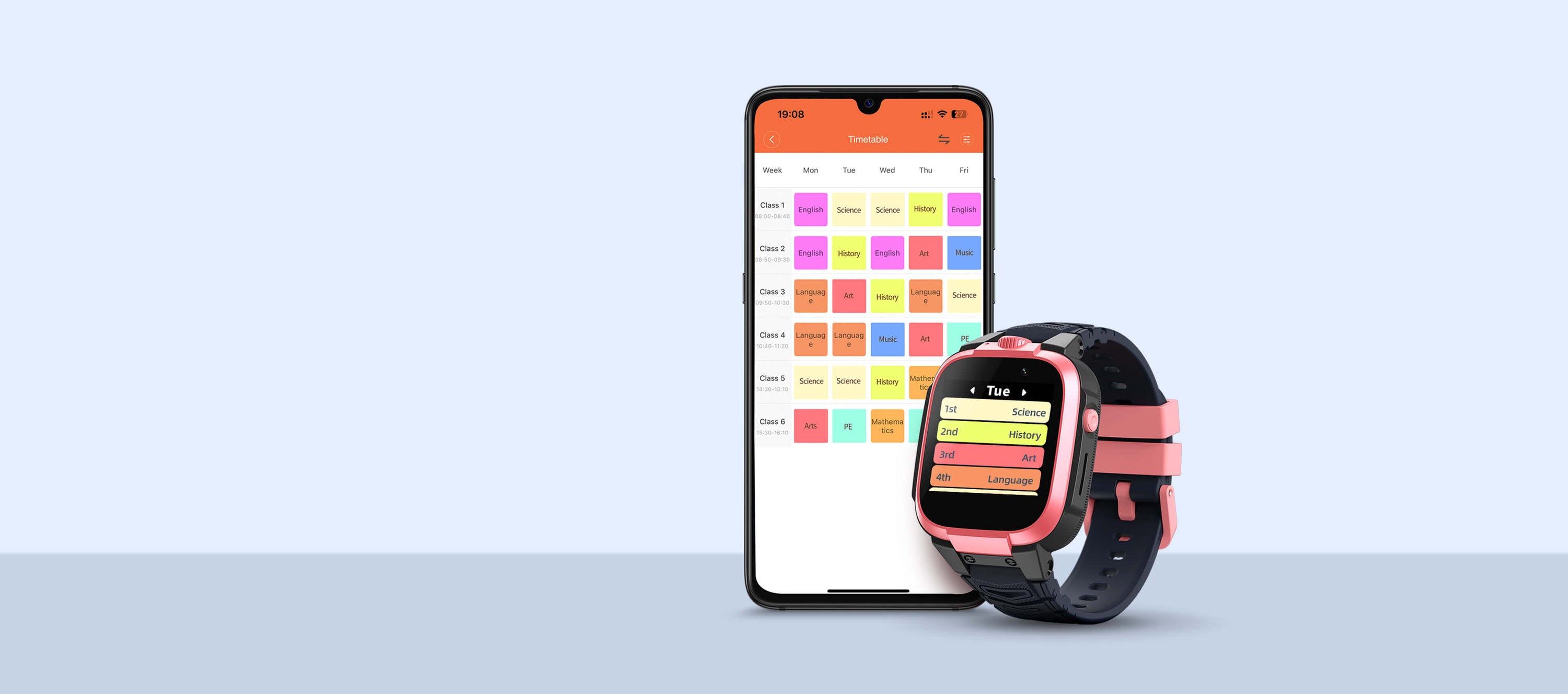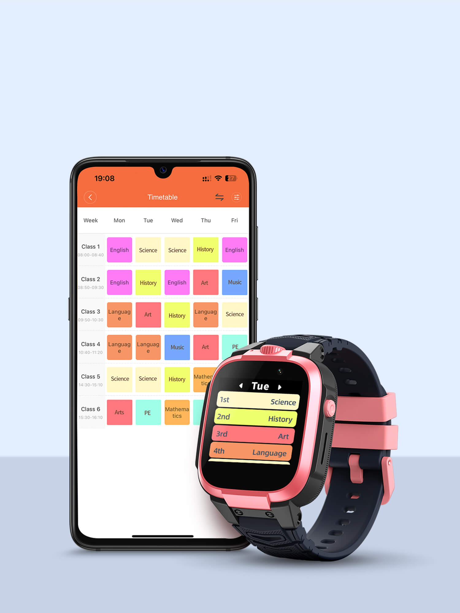 I promemoria dell'orario mantengono il tuo bambino in orario, mentre la modalità Classe limita le funzioni durante la scuola. Un pulsante di emergenza invia avvisi ai genitori quando necessario.