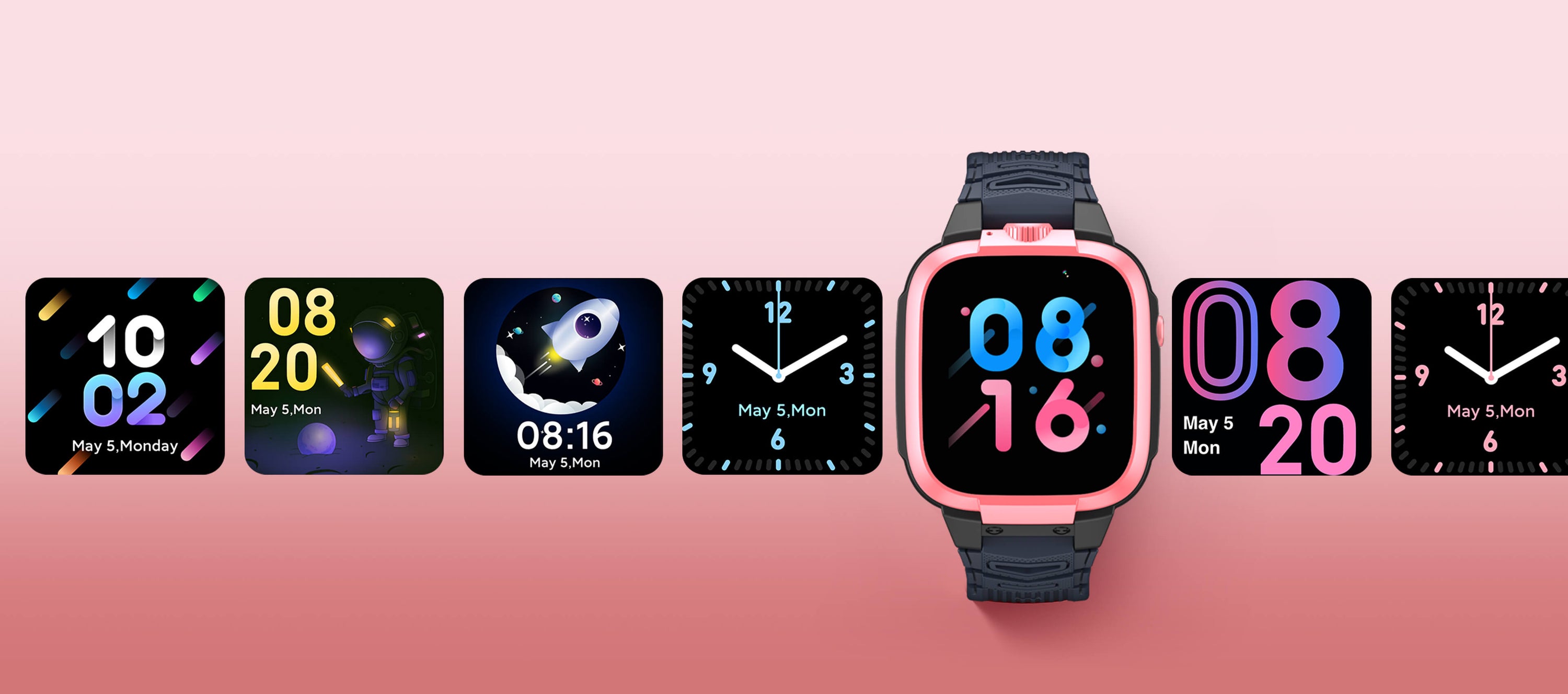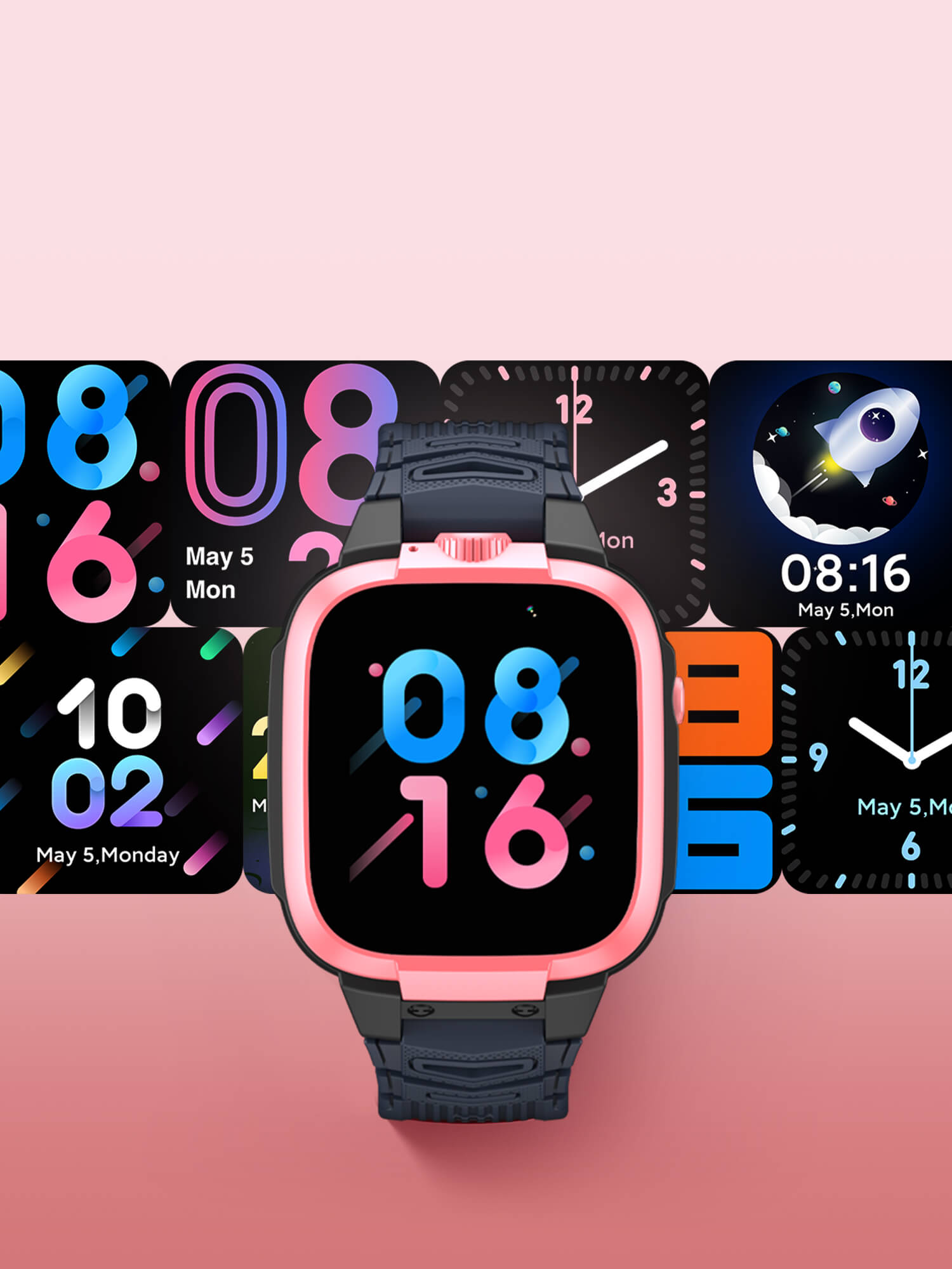 Schermo a colori TFT da 1,3 pollici con vetro Asahi® e luminosità regolabile per proteggere la vista del tuo bambino. Personalizzabile con quadranti sostituibili.